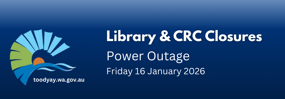 Owing to the current power outage in town today, Friday 16 January, the Toodyay Public Library and CRC have been closed for the remainder of the the day.The Shire's Admnistration Office and Visitor Centre have power and are open.
